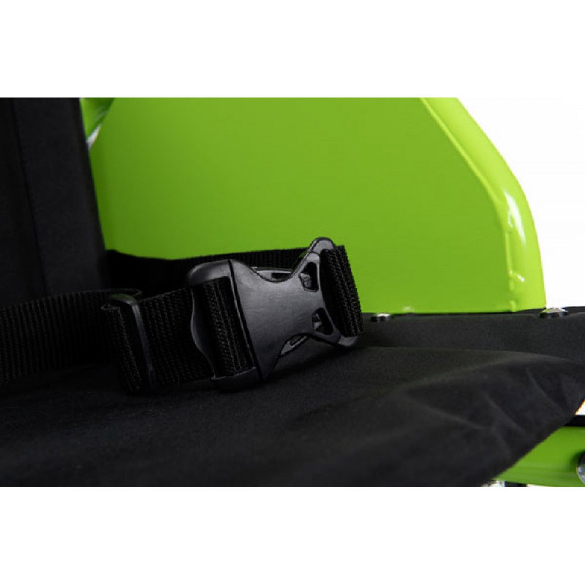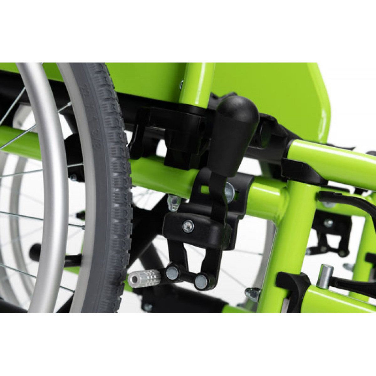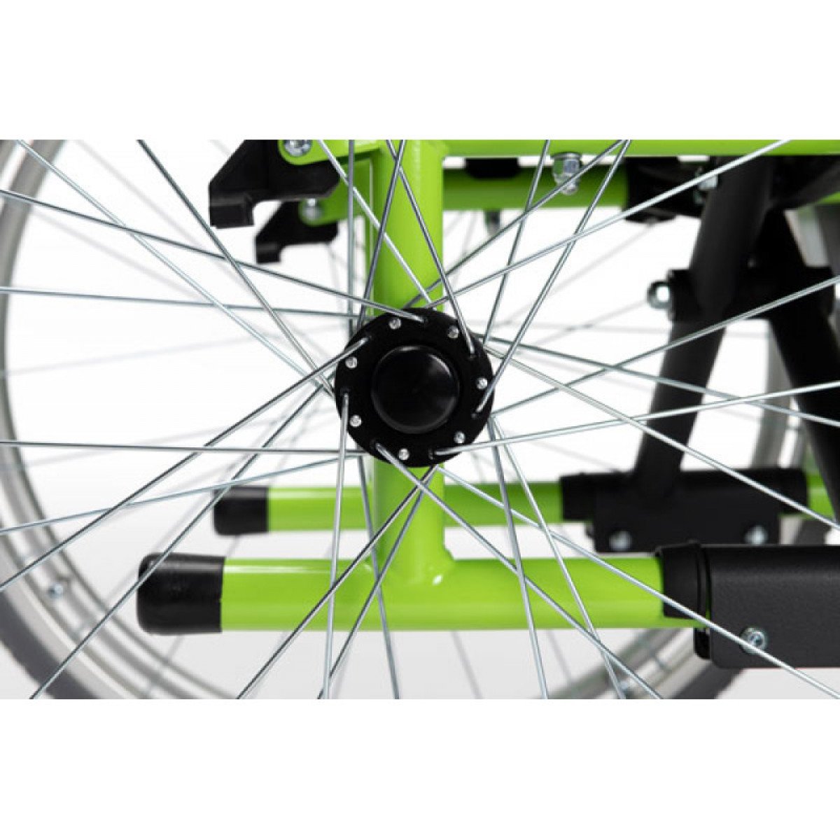 Рама выполнена из прочных стальных труб, поэтому коляска устойчива и рассчитана на активное использование. Яркий зелёный цвет делает её заметной и добавляет современный, динамичный вид.
