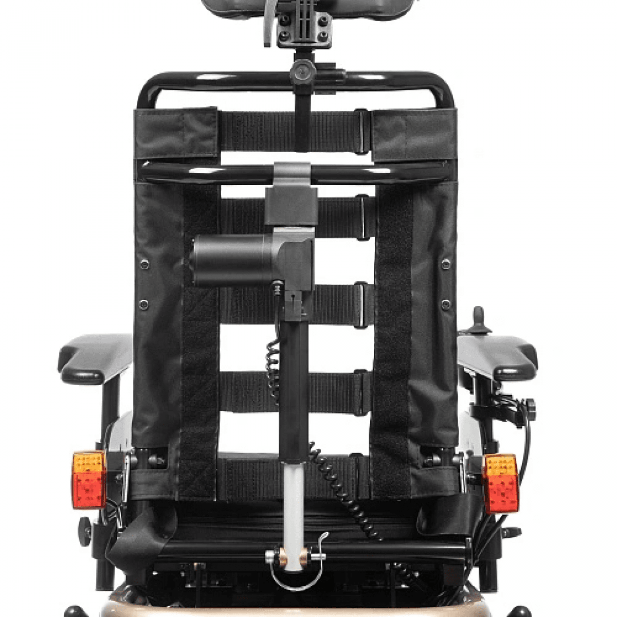 Коляска оснащена уникальным устройством для преодоления препятствий высотой до 10 см. Мощные двигатели, установленные в данной коляске, обеспечивают не только тягу, но и быстрейший набор скорости.
