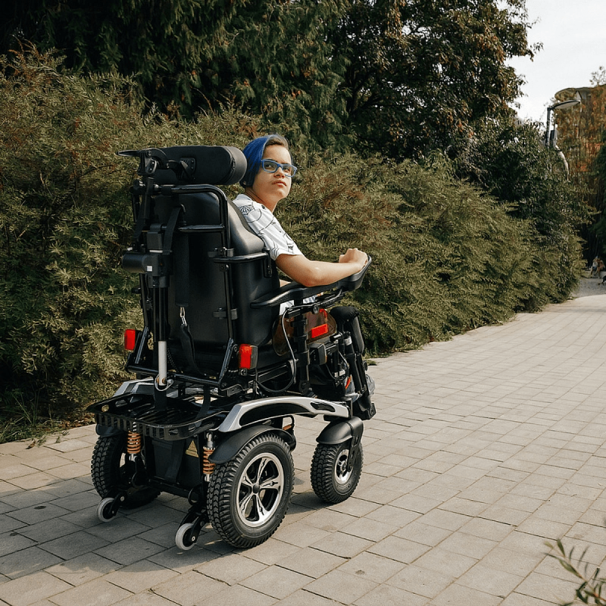 Эта модель обеспечивает электрическую регулировку углов наклона сиденья, спинки и подножек, что позволяет индивидуально настраивать положение для максимального комфорта и поддержки.