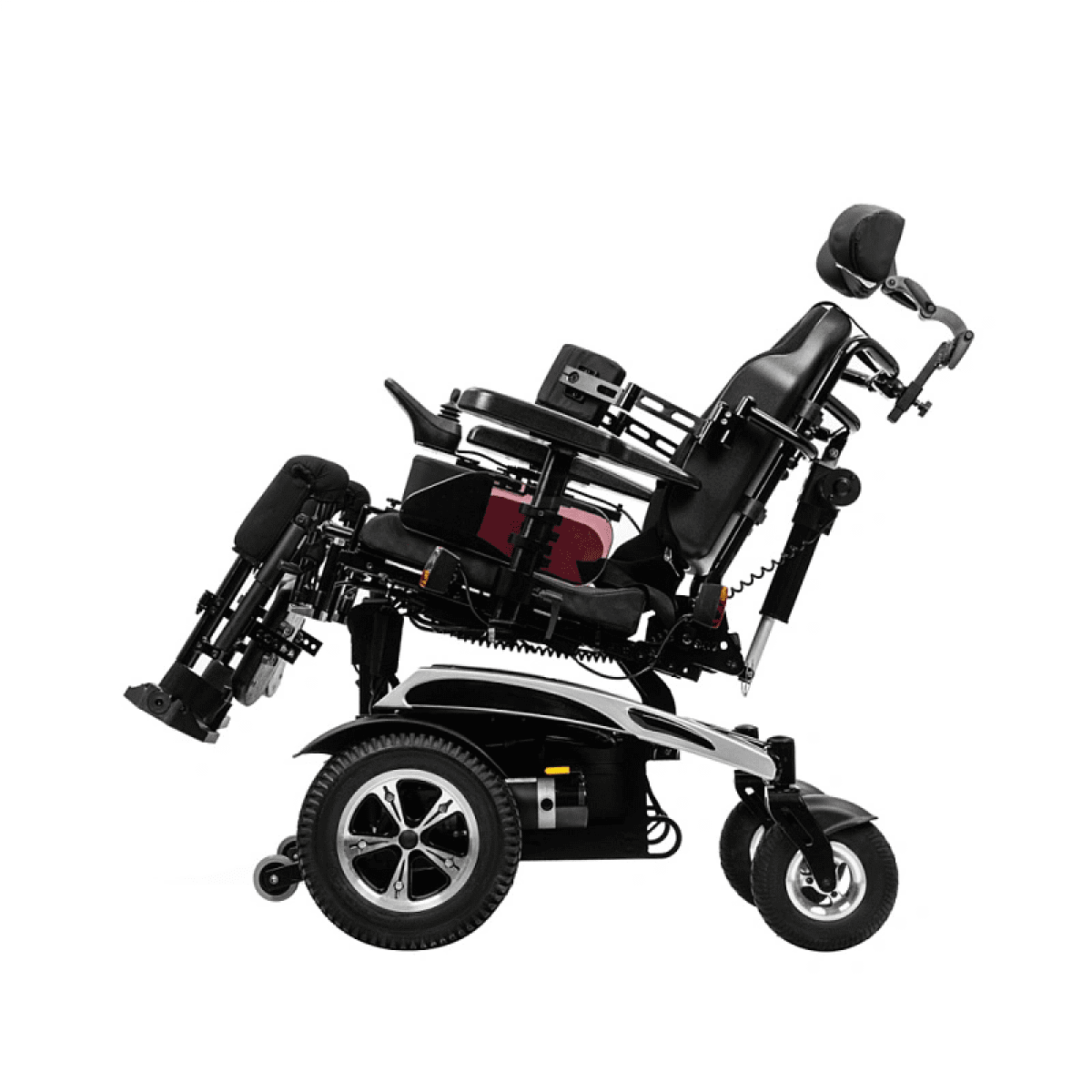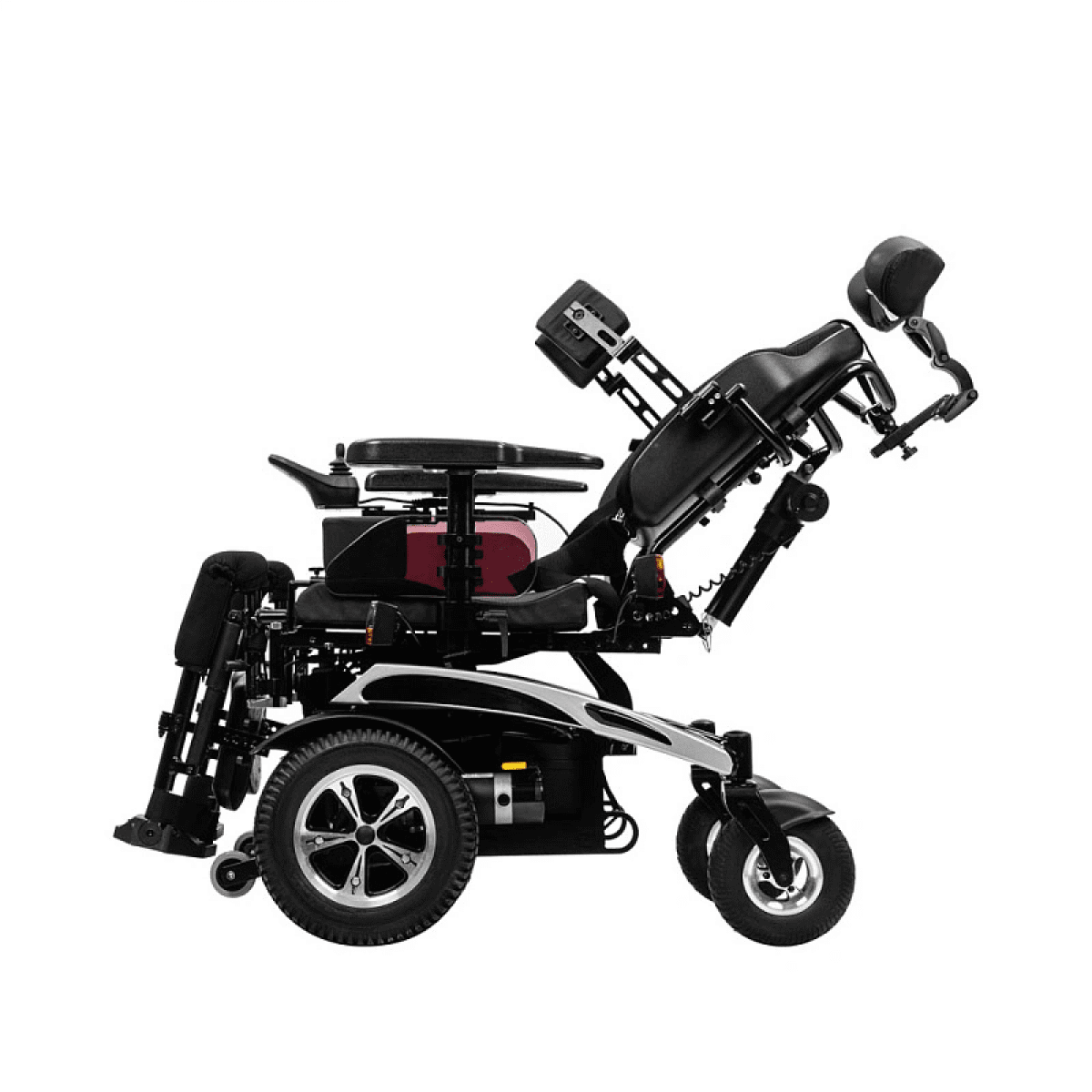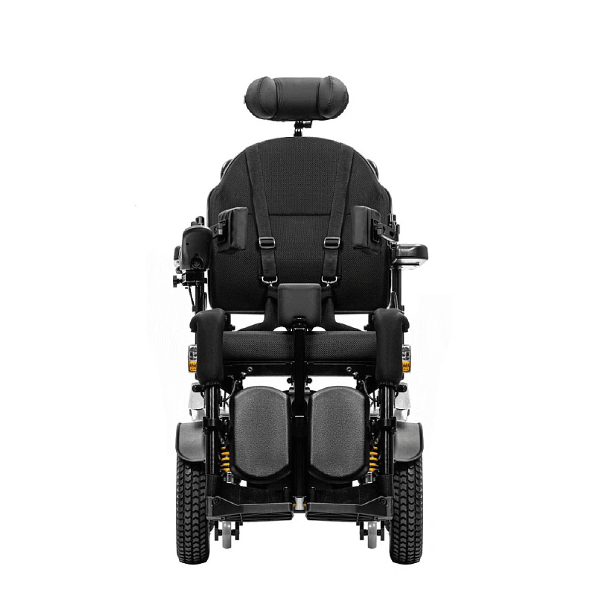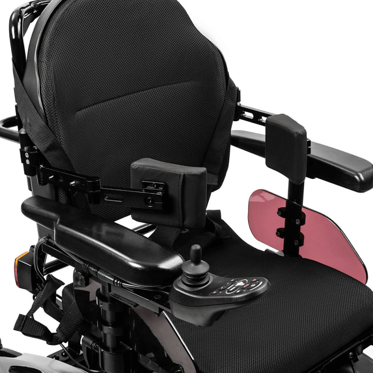 Коляска отличается продуманной системой комфорта: угол наклона спинки, подножек и сиденья регулируется с помощью электропривода, позволяя пользователю подобрать удобное положение для отдыха или активного движения. Эргономичная форма сиденья поддерживает правильную осанку и снижает нагрузку при длительном использовании.