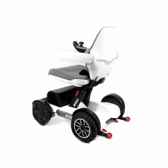 Рама выполнена из прочного алюминия с защитой от коррозии, что обеспечивает надёжность при ежедневной эксплуатации. В сложенном виде коляска занимает минимум места и помещается в багажник автомобиля. Управление осуществляется манипулятором, который можно установить под удобную руку, а через мобильное приложение доступны дополнительные функции контроля. В комплект входит зарядное устройство и всё необходимое для использования.