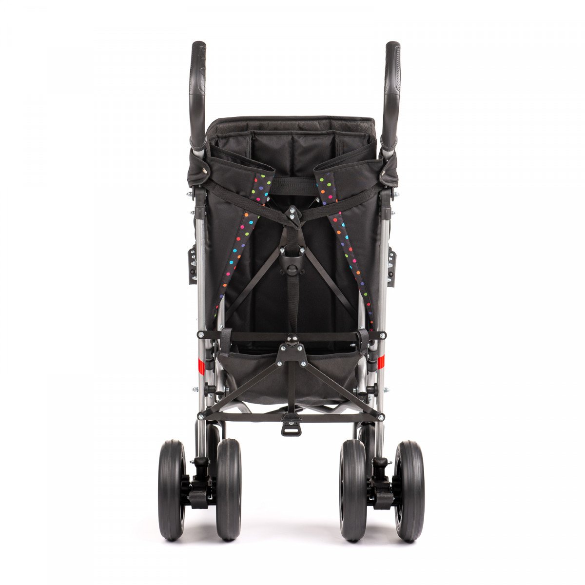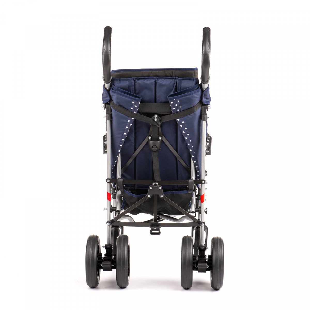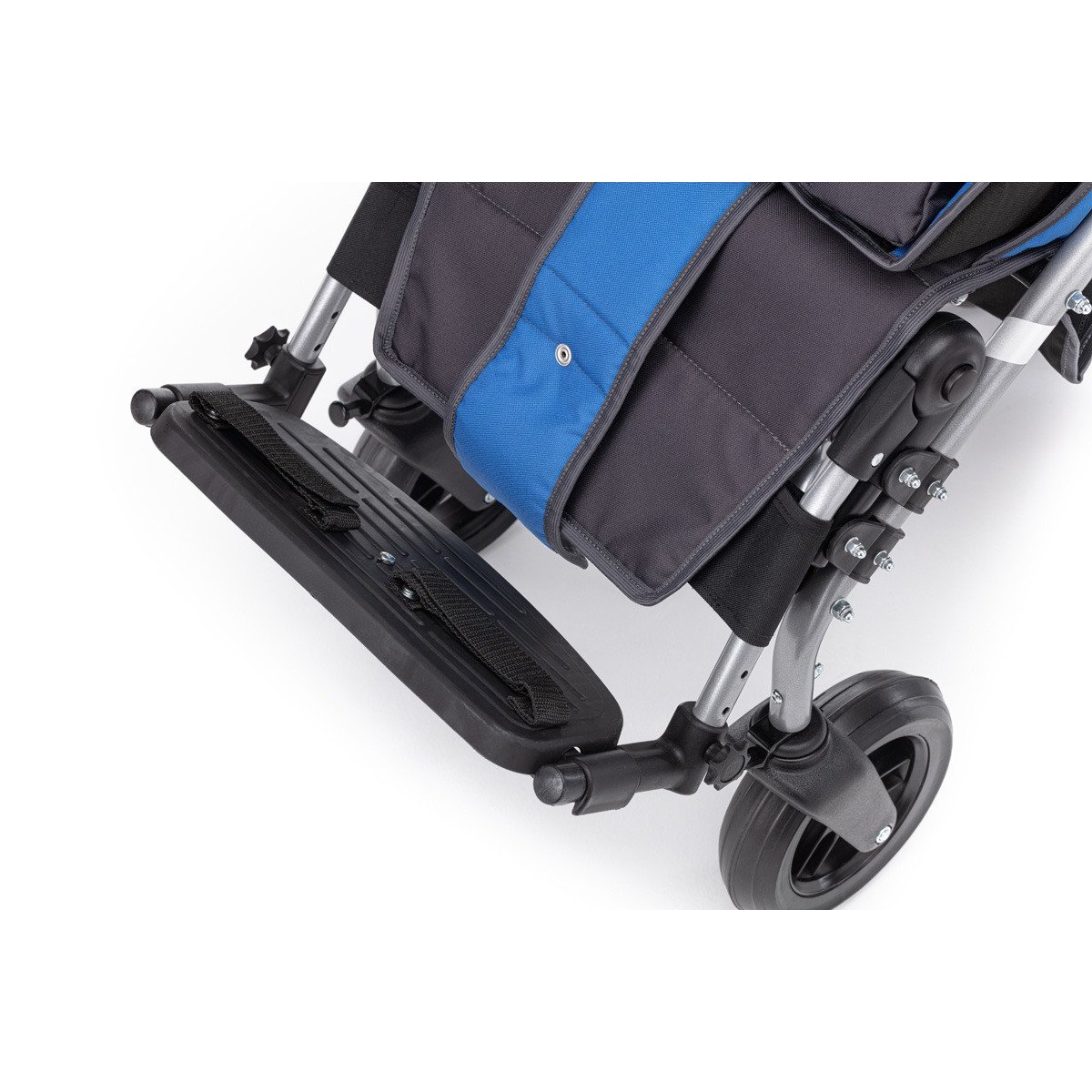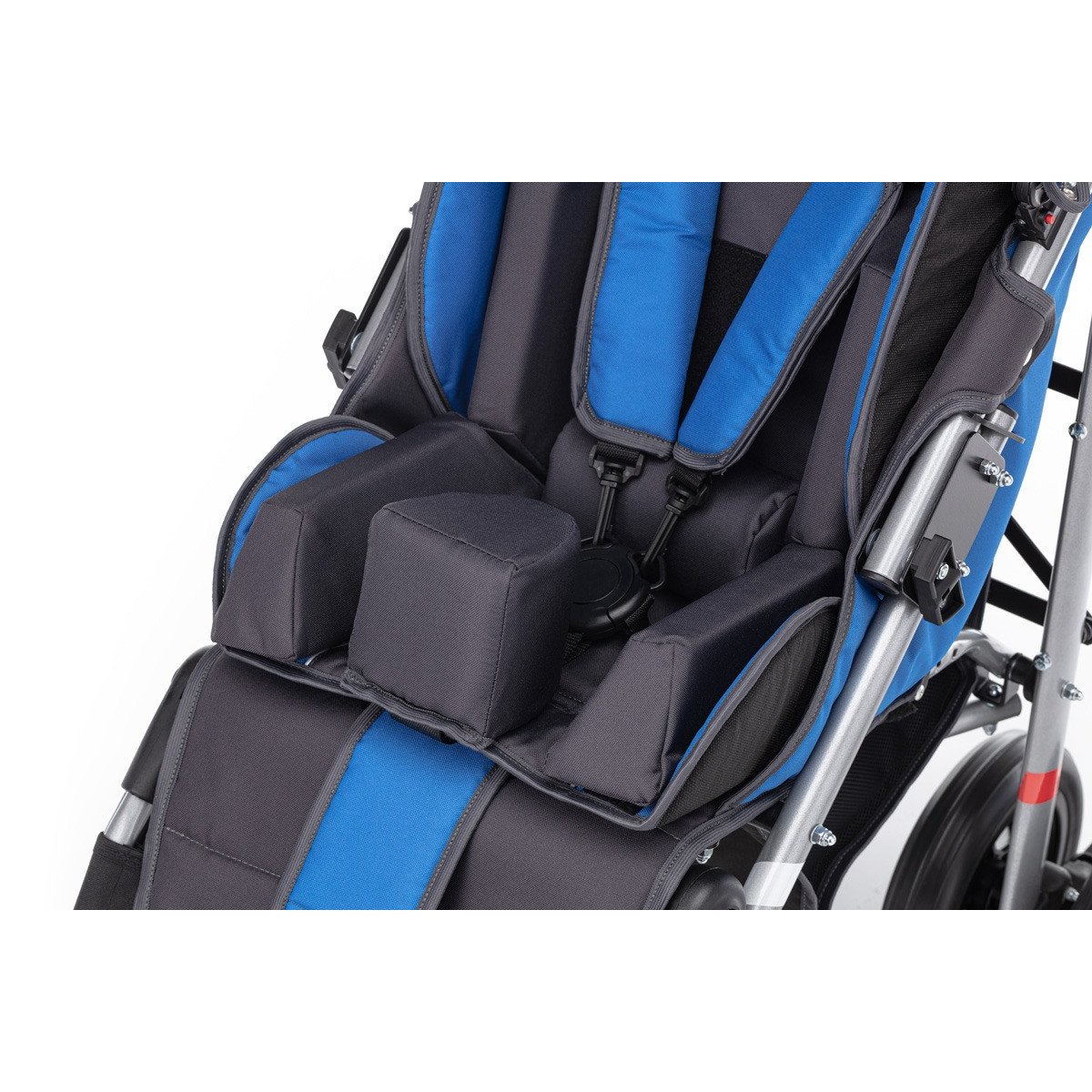Коляска хорошо маневрирует и легко управляется благодаря поворотным колёсам. Спинка плавно регулируется, позволяя выбрать комфортное положение — от активного сидения до отдыха. Подножка подстраивается под рост ребёнка, а абдуктор помогает удерживать правильное положение таза. Все элементы поддержки продуманы так, чтобы снизить нагрузку и обеспечить стабильную посадку.