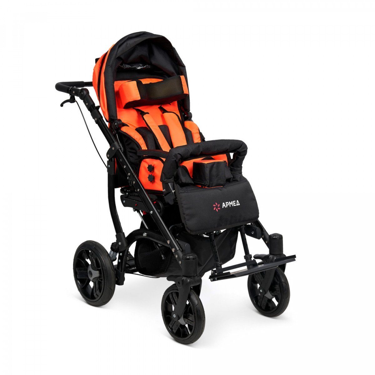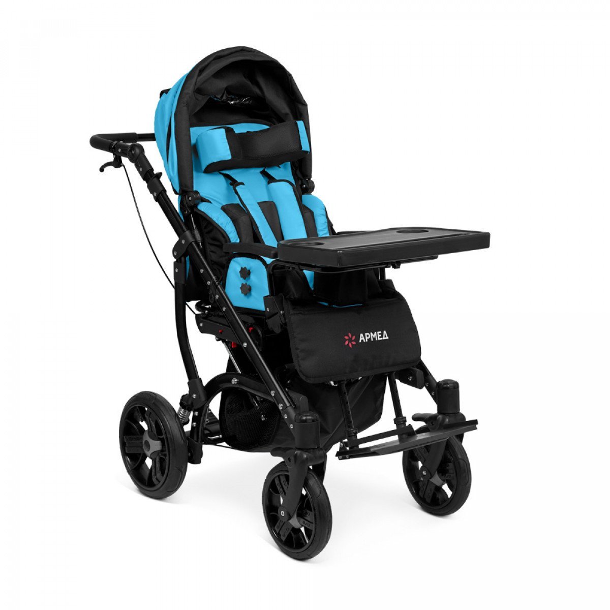 Армед Эвита Нео — современная коляска российского производства, разработанная для ежедневного ухода и прогулок с детьми с ДЦП и другими двигательными нарушениями. Она сочетает комфорт, безопасность и компактность: лёгкая складная рама, съёмные колёса и манёвренные передние колёсики упрощают хранение и транспортировку, а пневматические шины обеспечивают мягкий ход по любым дорогам.