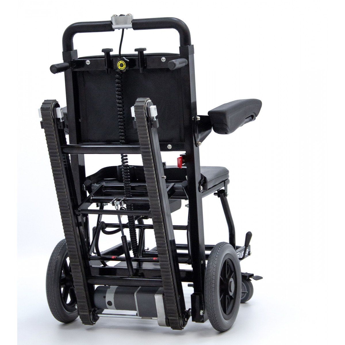 - Резиновая гусеница обеспечивает надёжное крепление на лестнице и защиту от скольжения