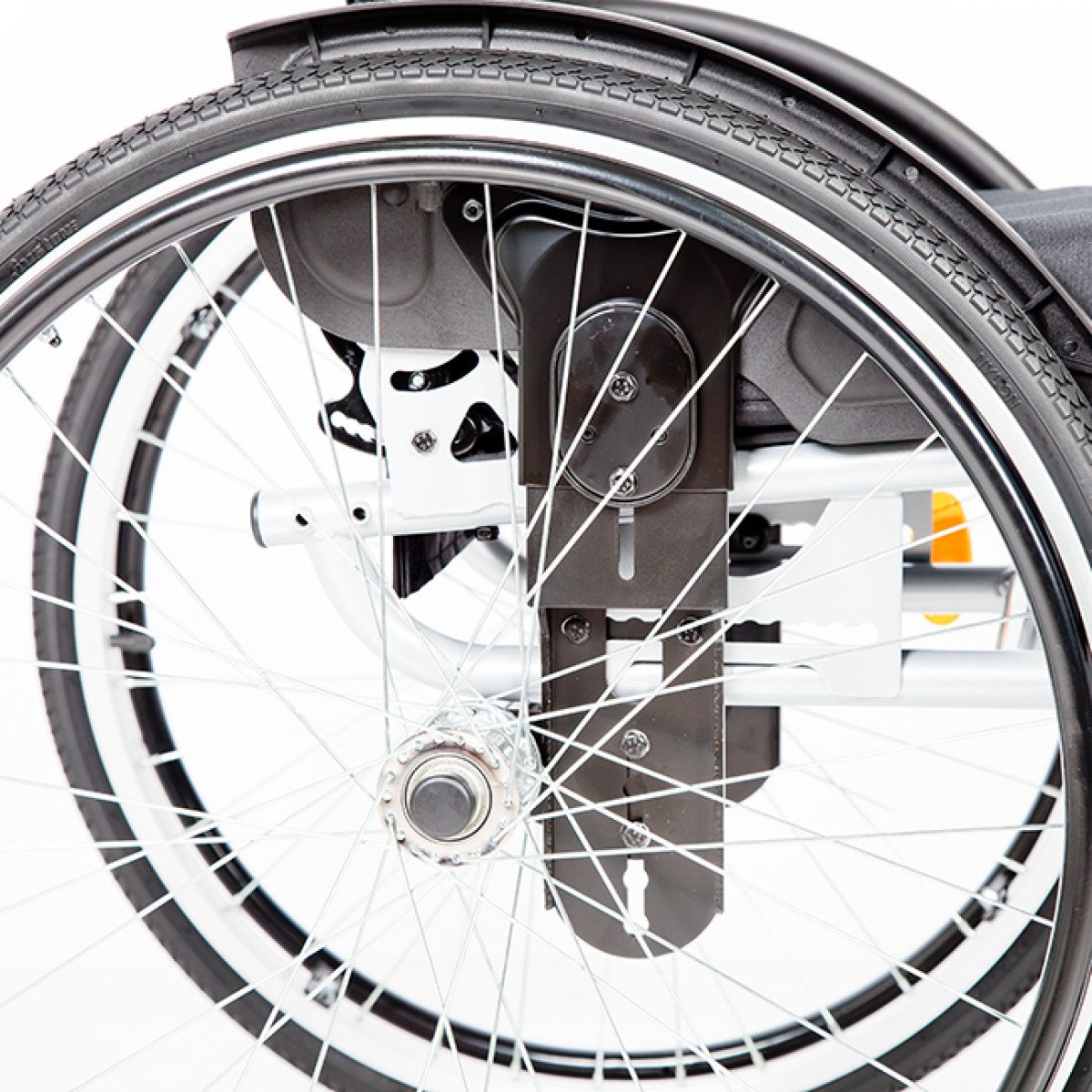 Компактная конструкция позволяет легко проходить узкие пространства и свободно перемещаться в общественных местах. Регулируемый угол наклона спинки помогает подобрать удобное положение и снижает нагрузку при длительном использовании, делая посадку более комфортной.