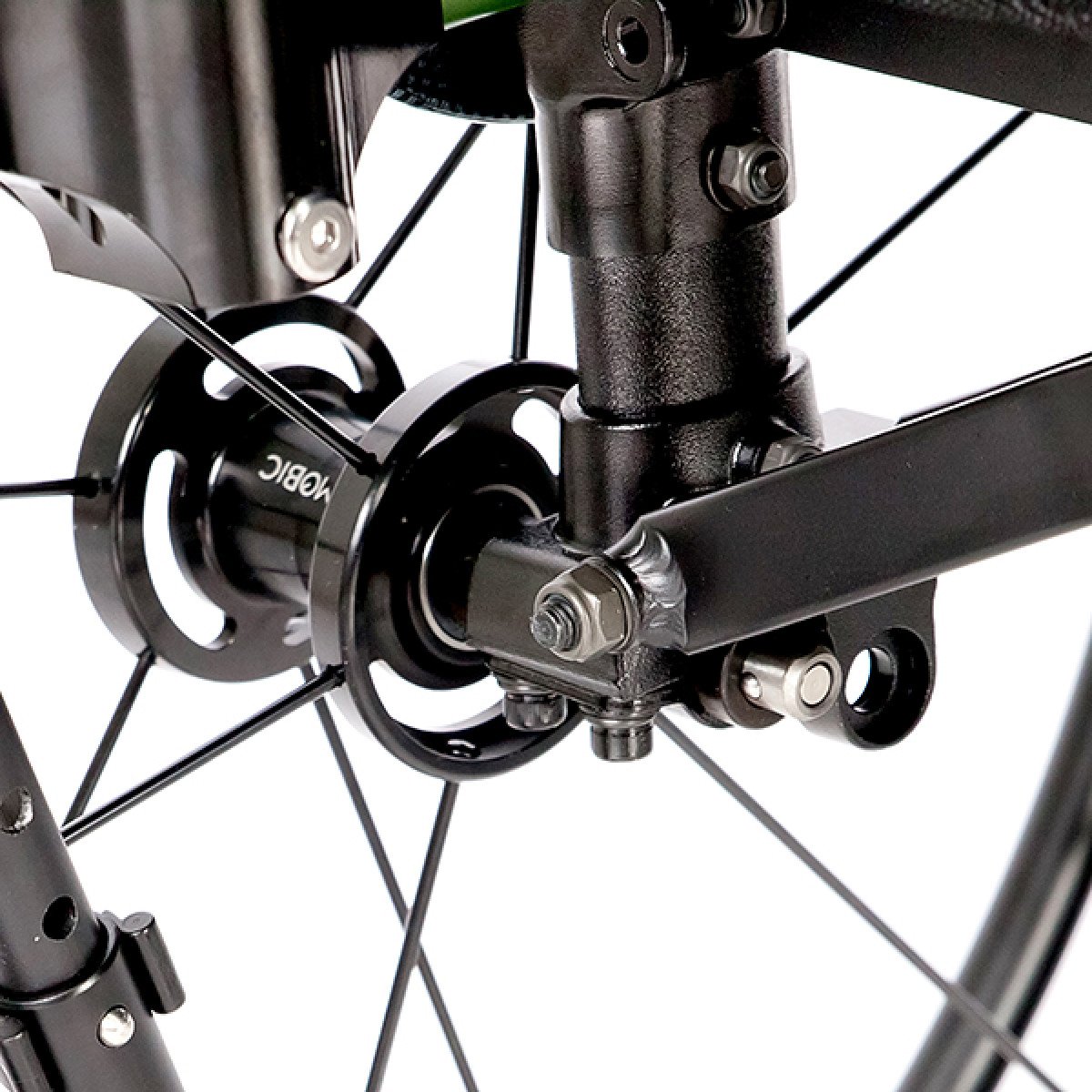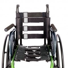 Задние колёса — быстросъёмные, доступны в вариантах с цельнолитыми или пневматическими шинами, что удобно при транспортировке и выборе под условия эксплуатации. Обода с антискользящим покрытием упрощают управление, а стояночные тормоза с регулировкой обеспечивают контроль и безопасность во время остановки. Складная конструкция облегчает хранение и перевозку коляски.