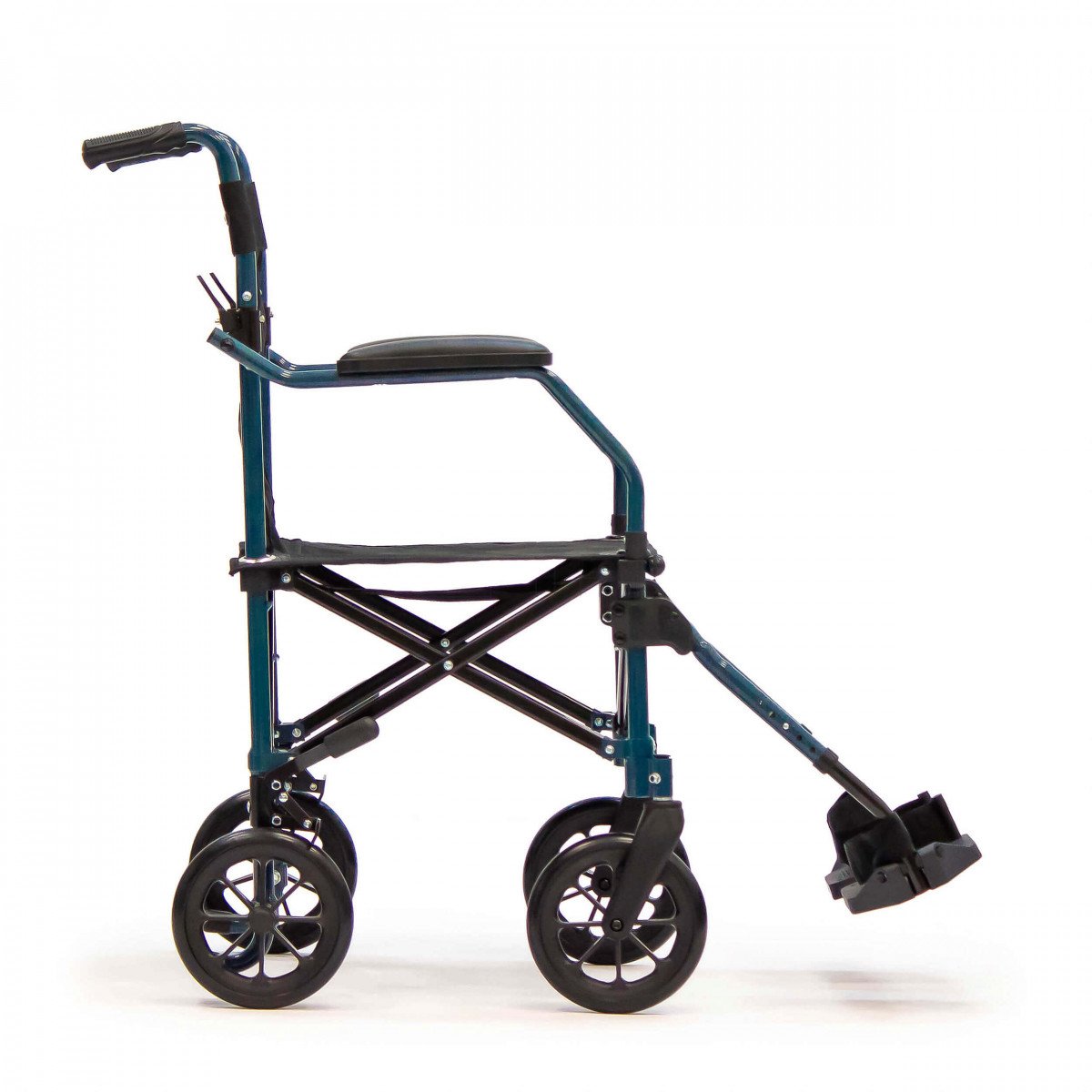 Складная рама по типу «сторона к стороне» и складывающаяся спинка позволяют быстро уменьшить габариты каталки для перевозки и хранения. Благодаря этому её удобно брать с собой в поездки, включая перелёты и поездки на общественном транспорте.