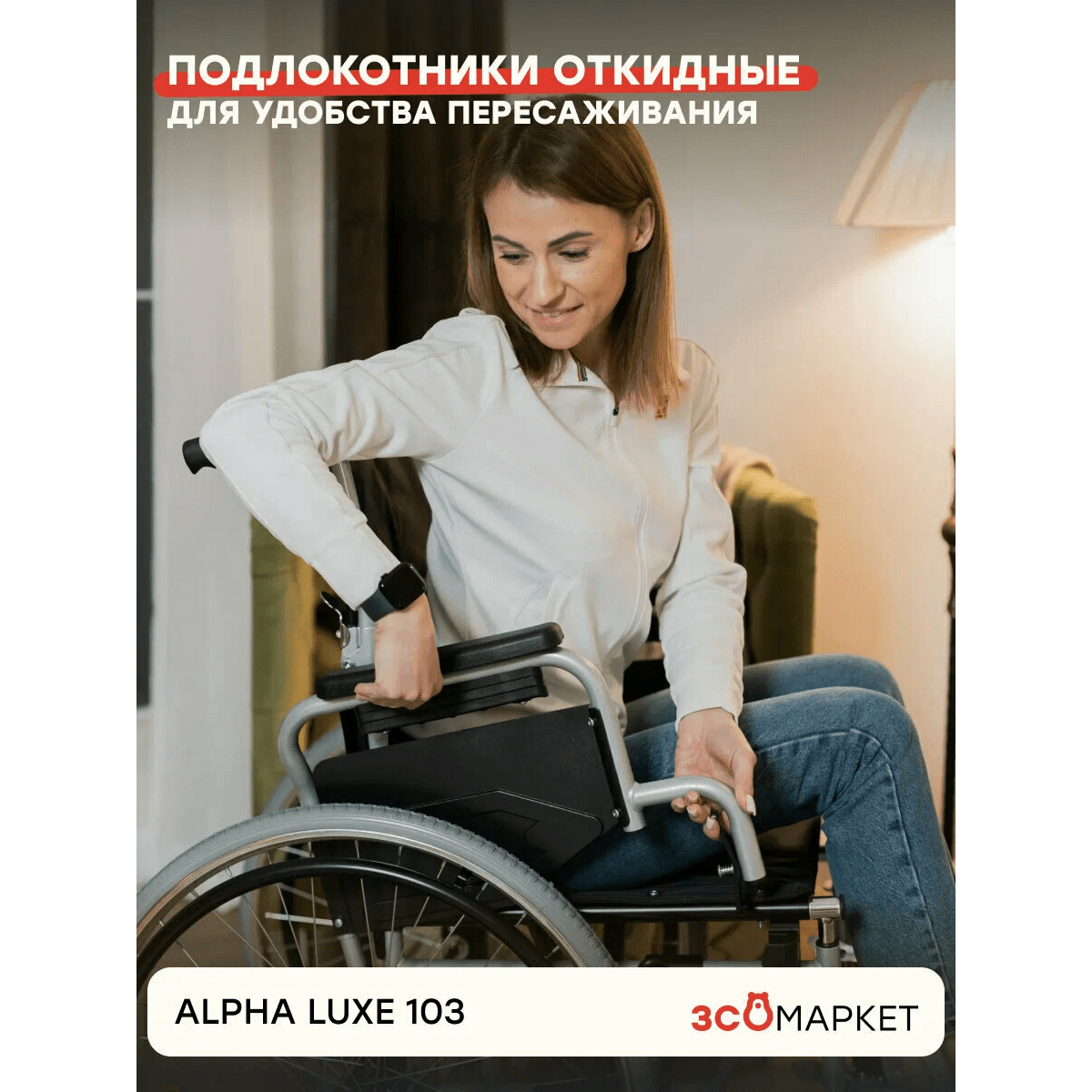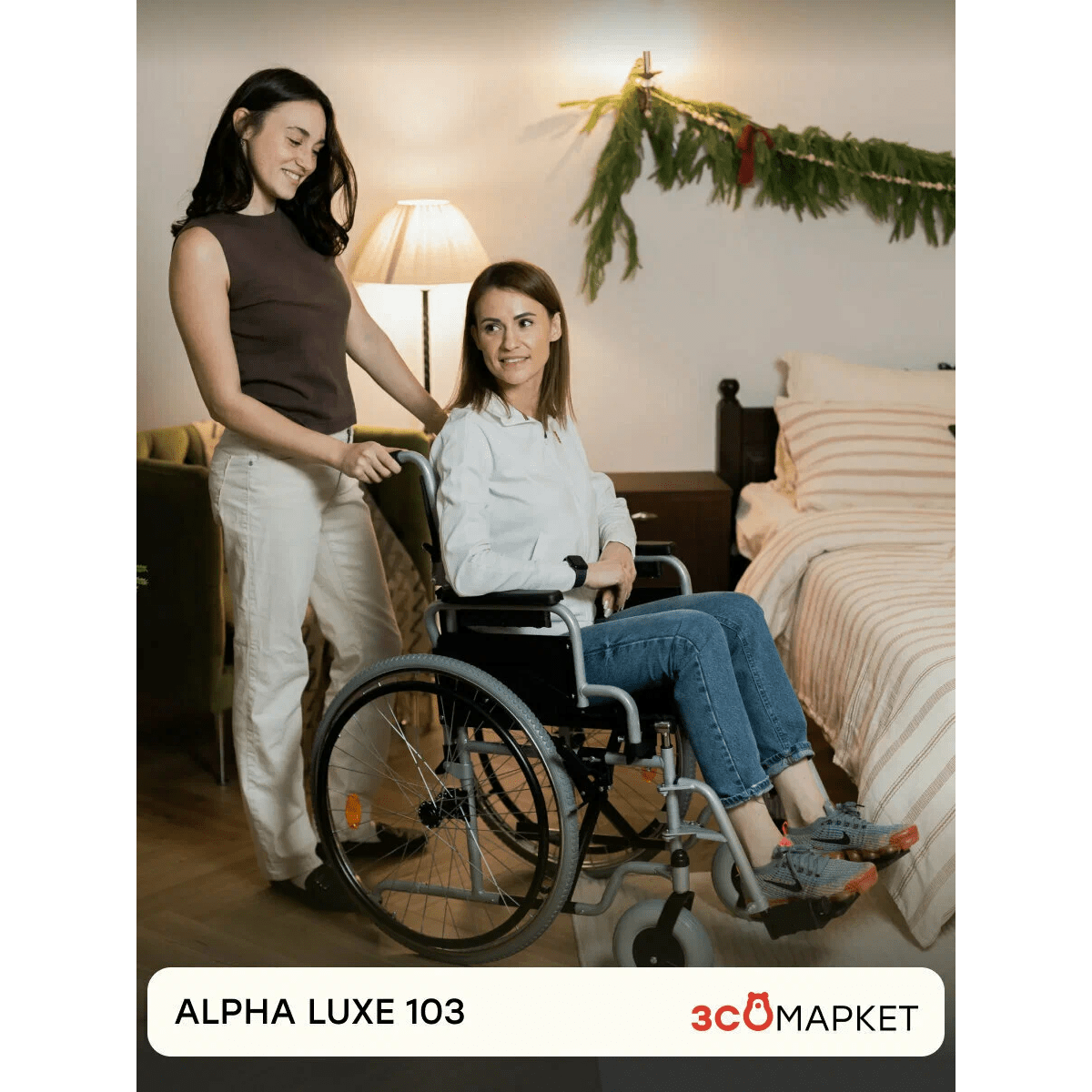 Кресло-коляска ЗСО Alpha Luxe 103 (Альфа Люкс 103) — универсальная модель с ручным приводом, рассчитанная на нагрузку до 130 кг. Подходит для дома и улицы, сочетает комфортную посадку, регулируемые элементы и надёжную конструкцию.