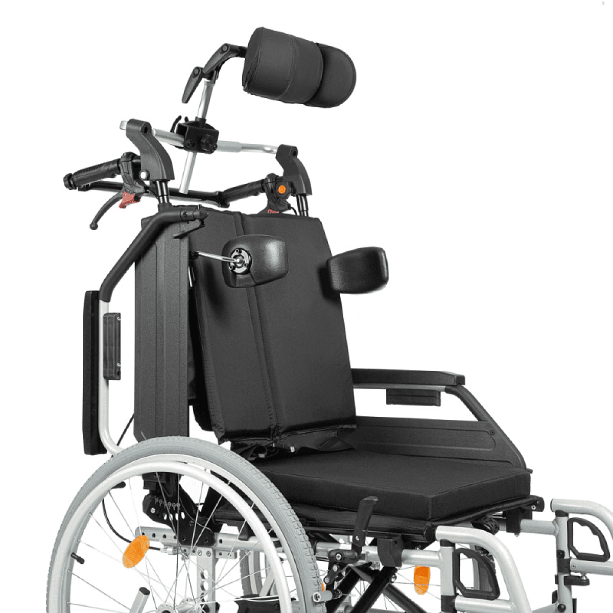 Настройки коляски включают возможность изменения угла наклона спинки, высоты сиденья, а также регулировки подлокотников и подножек. Важной частью конструкции является подголовник и боковые поддержки. Подголовник надёжно фиксирует голову, может регулироваться по высоте и углу наклона. Боковые поддержки, в свою очередь, обеспечивают дополнительную стабилизацию и защиту от смещении.