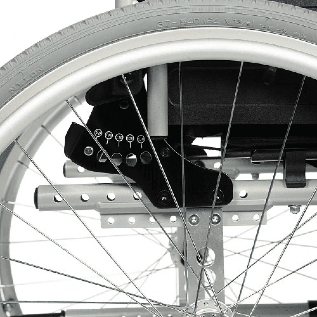 Откидные и съёмные подлокотники регулируются по высоте с помощью накладок. Подножки коляски могут быть настроены по длине, опоры для стоп – по углу наклона. Колёсные антиопрокидыватели встают в несколько положений по длине и высоте. Съёмные ручки для сопровождающего лица также настраиваются по высоте.
