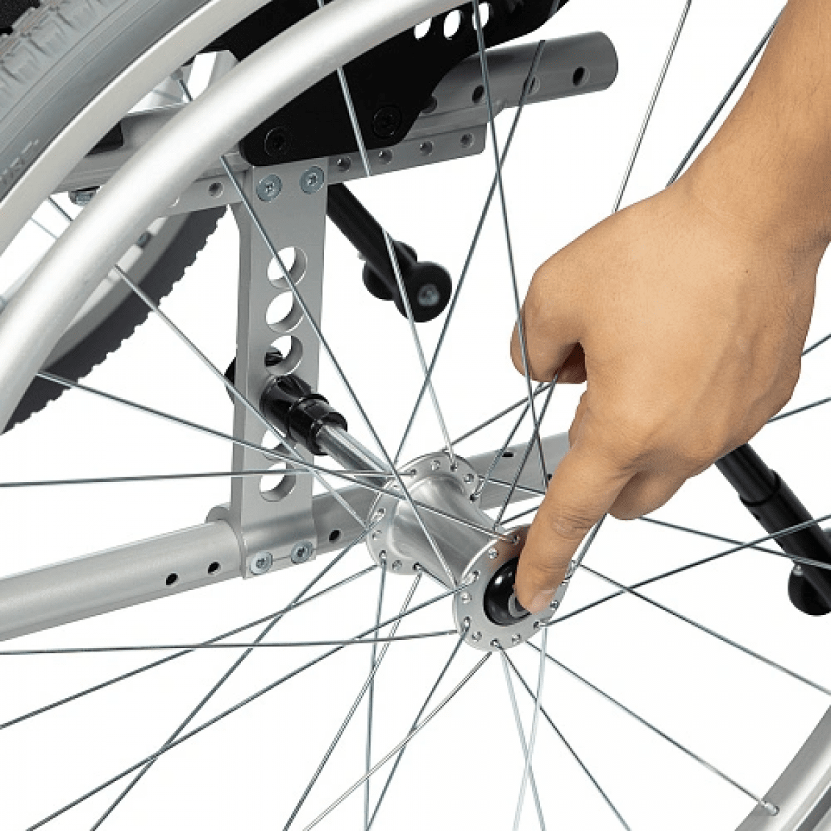 - Быстросъёмные задние колёса регулируются по вертикали и горизонтали