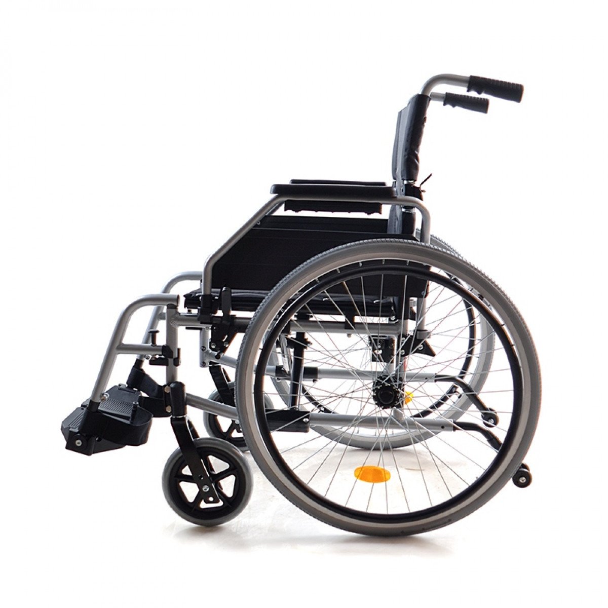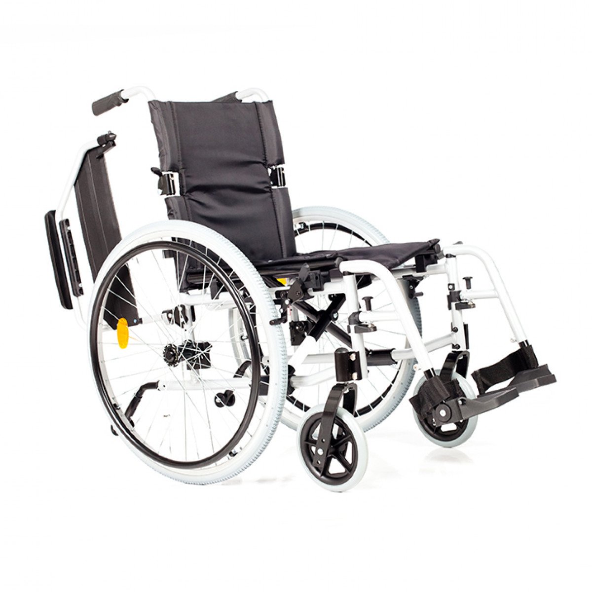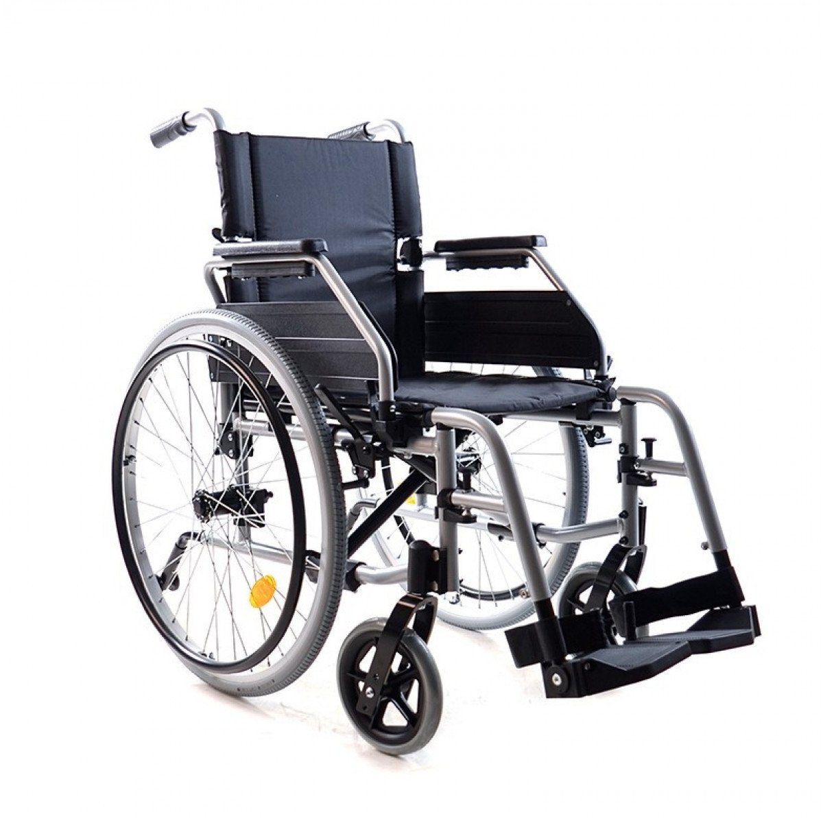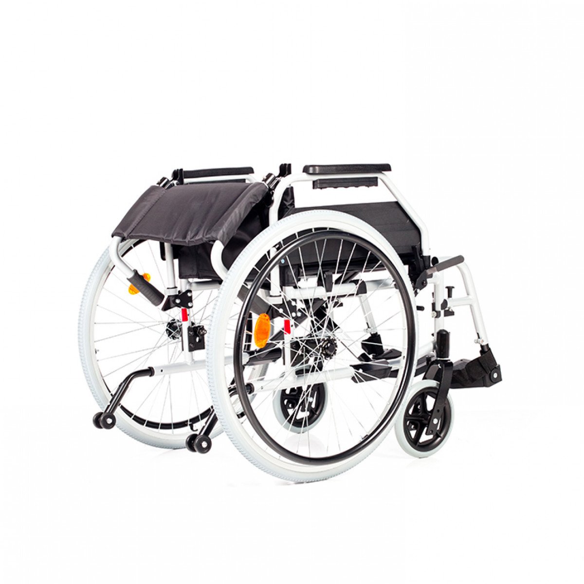 Рама выполнена из металла и рассчитана на длительное использование. Коляска складывается без инструментов, спинка также складывается, уменьшая габариты. Передние колёса — цельнолитые, задние — быстросъёмные, доступны в вариантах с цельнолитыми или пневматическими шинами. Обода с антискользящим покрытием упрощают управление, а стояночные тормоза с регулировкой обеспечивают контроль и безопасность во время остановки.