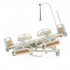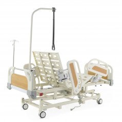 Каркас выполнен из стальных труб с эпоксидным покрытием и рассчитан на длительную ежедневную эксплуатацию. Подвижная конструкция из 5 секций позволяет легко менять положение тела, а стальные ламели улучшают вентиляцию и поддержку матраса. В конструкции предусмотрены отверстия для установки инфузионных стоек и дуги для подтягивания, что делает кровать удобной для медицинских процедур и самостоятельных движений пользователя.