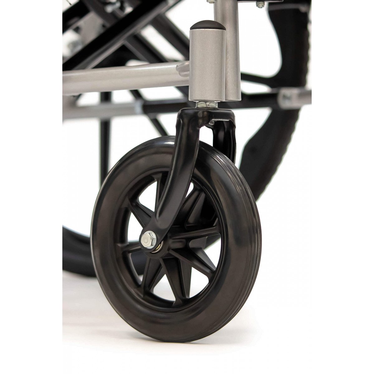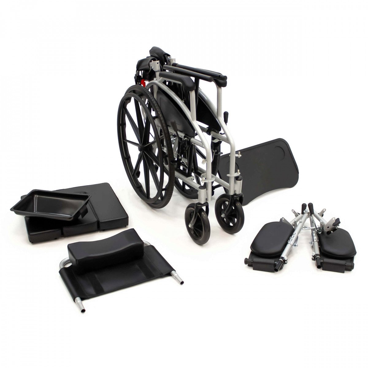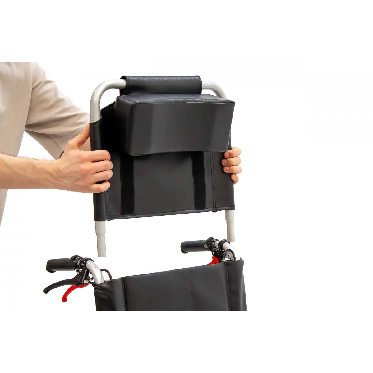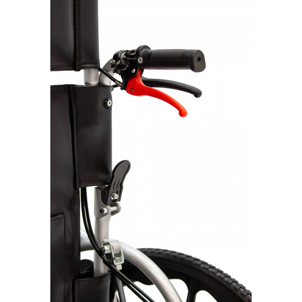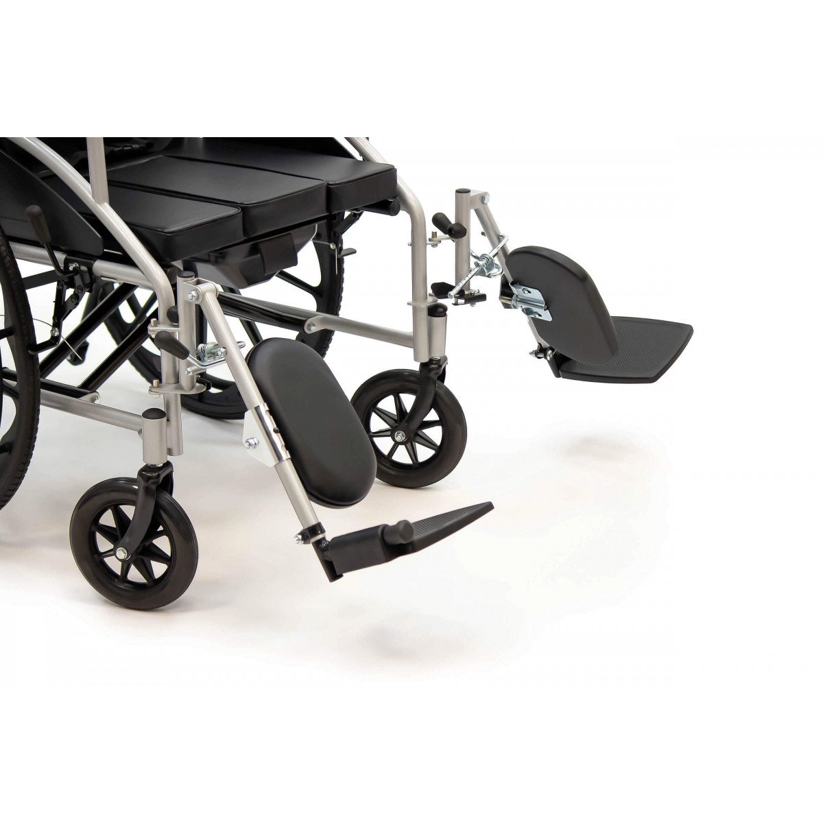 Сиденье из кожзаменителя легко очищается и подходит для регулярного ухода. Встроенное санитарное оснащение упрощает повседневные процедуры, а рифлёные обода облегчают управление. Модель продумана для пользователей с ограниченной подвижностью и тех, кому требуется больше поддержки в течение дня.