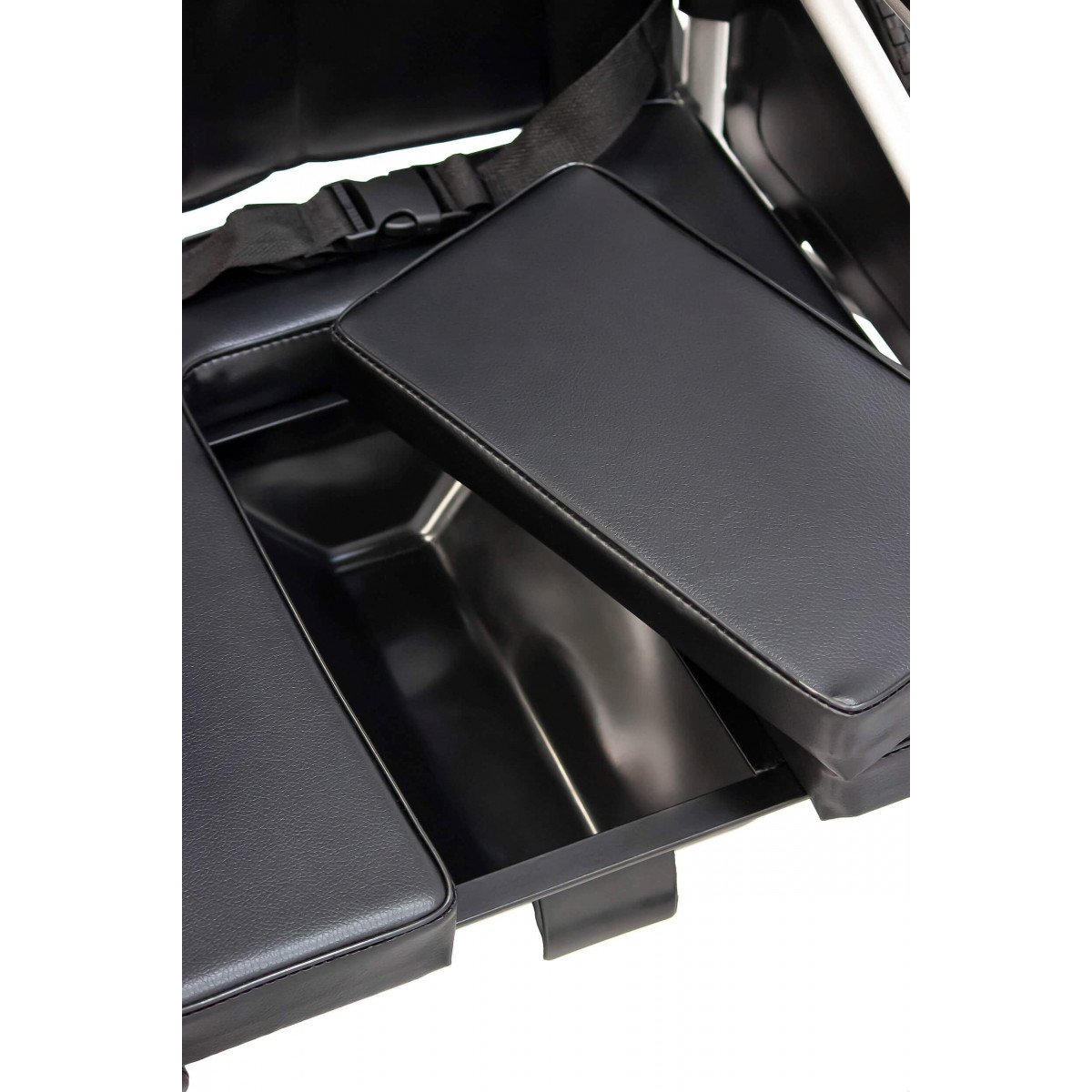 Конструкция позволяет быстро организовать лежачее место: спинка откидывается, подножки поднимаются до горизонтали, а съёмный удлинитель создаёт дополнительную опору для головы и шеи. Подголовник ограничивает лишние движения в шейном отделе, а упоры под голени подстраиваются под положение ног, снижая нагрузку и повышая комфорт.