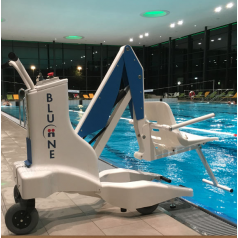 DiGi Project BluOne (ДиДжи Проджект БлюВан) — это инновационное вспомогательное устройство для перемещения и доступа в бассейн людей с ограниченными возможностями перемещения, которые хотят заходить в воду безопасным, быстрым и удобным образом. Система спроектирована так, чтобы сделать процесс максимально простым и интуитивным: достаточно помочь пользователю сесть на удобное сиденье, после чего подъемник плавно доставит его к воде. Погружение и подъем осуществляются нажатием одной кнопки, что делает использование системы доступным для всех.