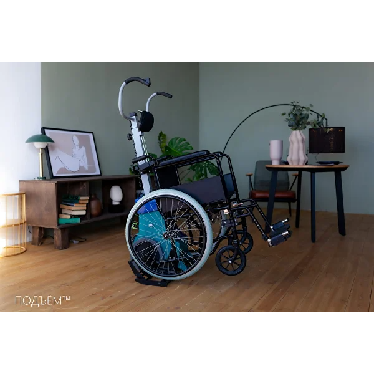Устройство совместимо с большинством инвалидных колясок и не требует снятия колёс перед использованием. Прочная алюминиевая конструкция, надёжная система фиксации и эргономичные элементы управления обеспечивают комфорт и безопасность при эксплуатации. Аккумуляторная батарея позволяет работать без подзарядки на протяжении всего цикла подъёма.
