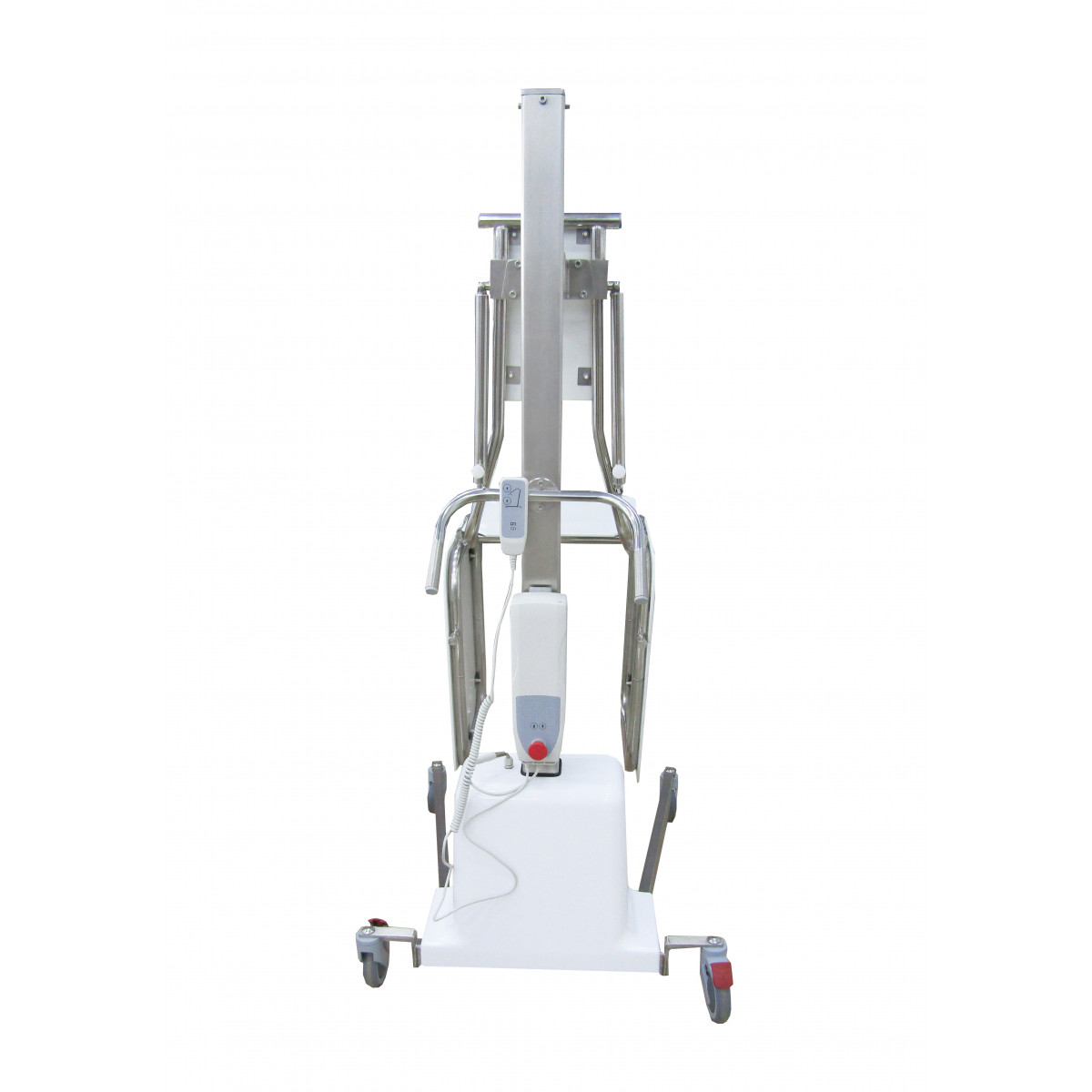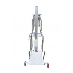 Конструкция выполнена на прочной металлической основе и оснащена подъёмным механизмом, который поднимает и опускает ложе нажатием одной кнопки. Трёхсекционная платформа регулируется по высоте и углу наклона, что помогает выбрать удобное положение для каждого пациента. Благодаря компактным размерам и маневренным колёсам подъёмник легко перемещается между помещениями, не занимая много места.