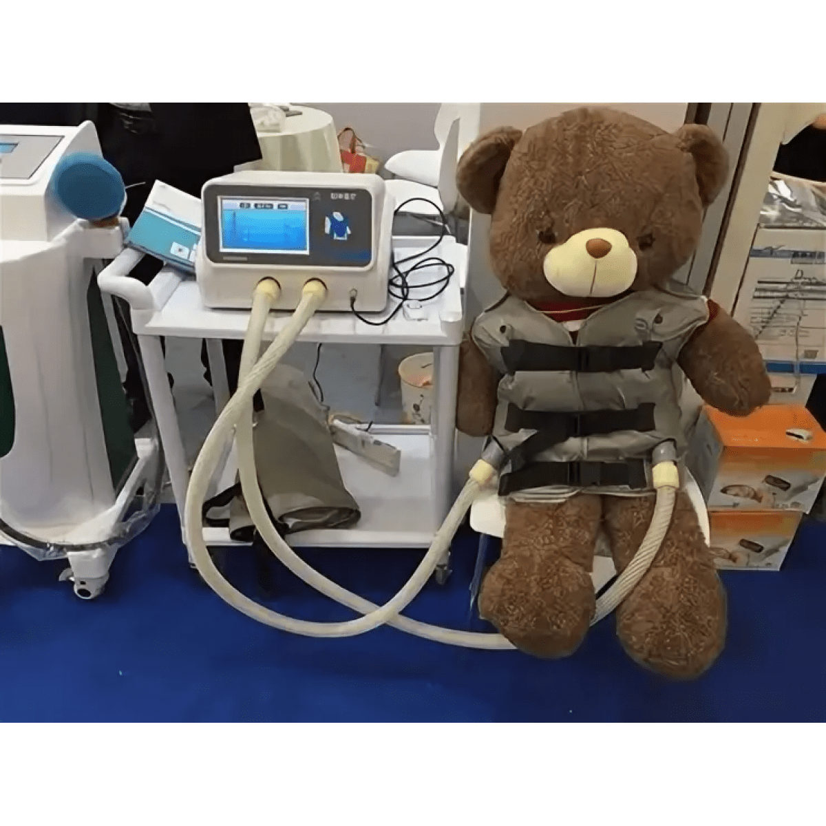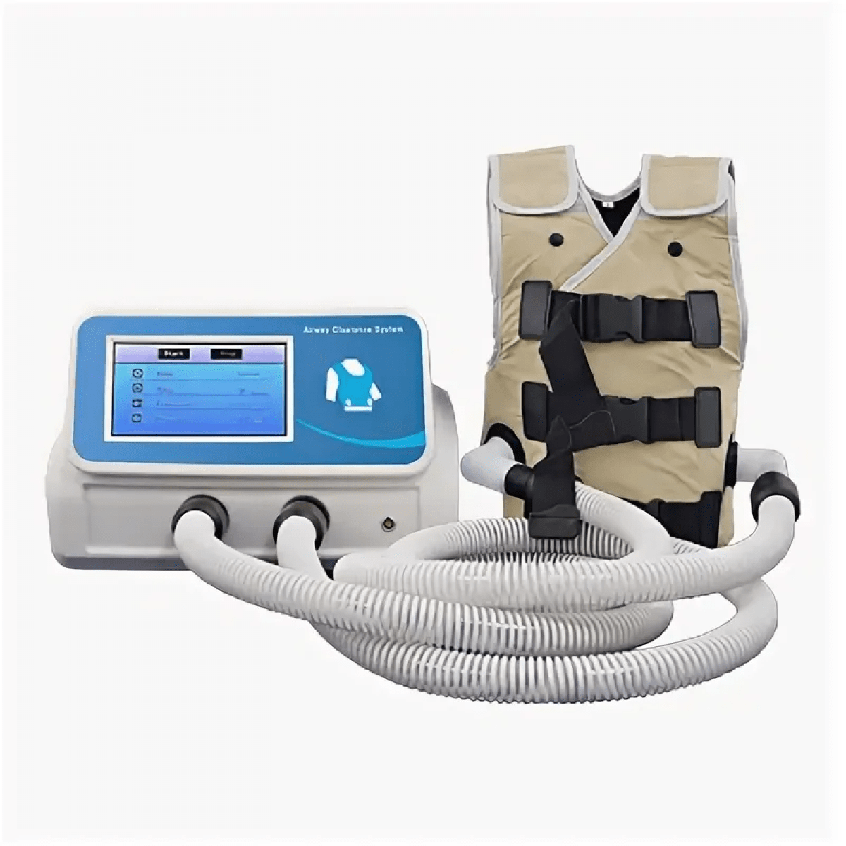 Устройство работает как воздушный компрессор: оно подаёт импульсы воздуха в жилет, который ритмично раздувается и сдувается. Возникающая вибрация разжижает мокроту и продвигает её к верхним дыхательным путям, обеспечивая результат, сравнимый с профессиональной физиотерапией грудной клетки. При этом пользователю не нужен медицинский опыт — процедура проходит в удобном положении и занимает меньше времени, чем ручной массаж.
