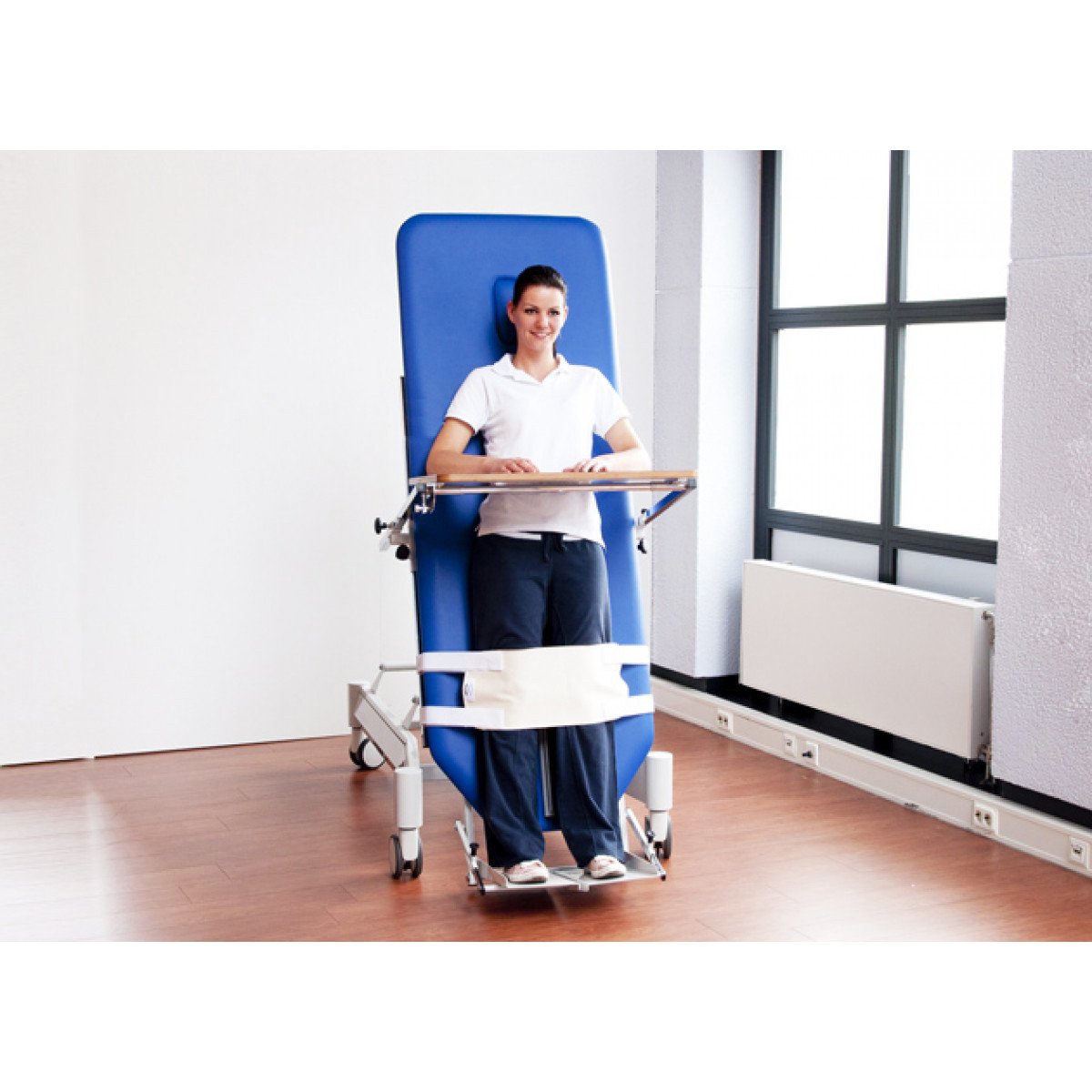 Стол помогает безопасно адаптировать пользователя к вертикальному положению после длительного постельного режима, инсультов, инфарктов и других состояний. Угол наклона и высота регулируются электрически, без рывков и лишней нагрузки. Подножка настраивается отдельно, что позволяет подстроить стол под рост и особенности посадки.