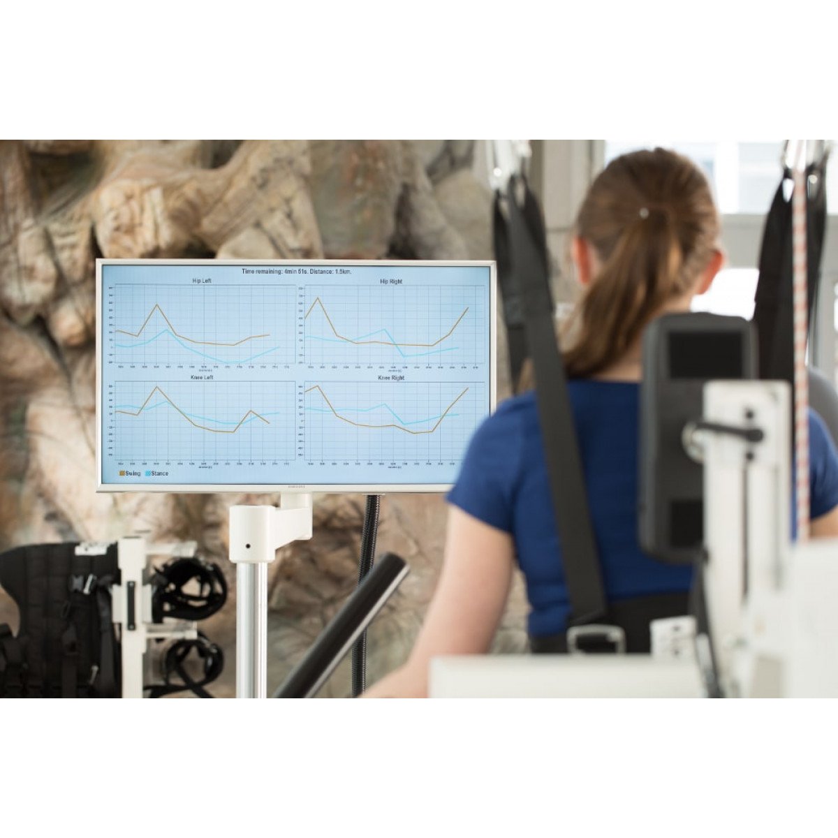 С помощью LokomatPro врач может контролировать и регулировать параметры тренировки через удобный интерфейс, а интегрированная система обратной связи позволяет мониторить и отображать до 8 биомеханических характеристик ходьбы в реальном времени, повышая мотивацию пользователя и ускоряя процесс восстановления.