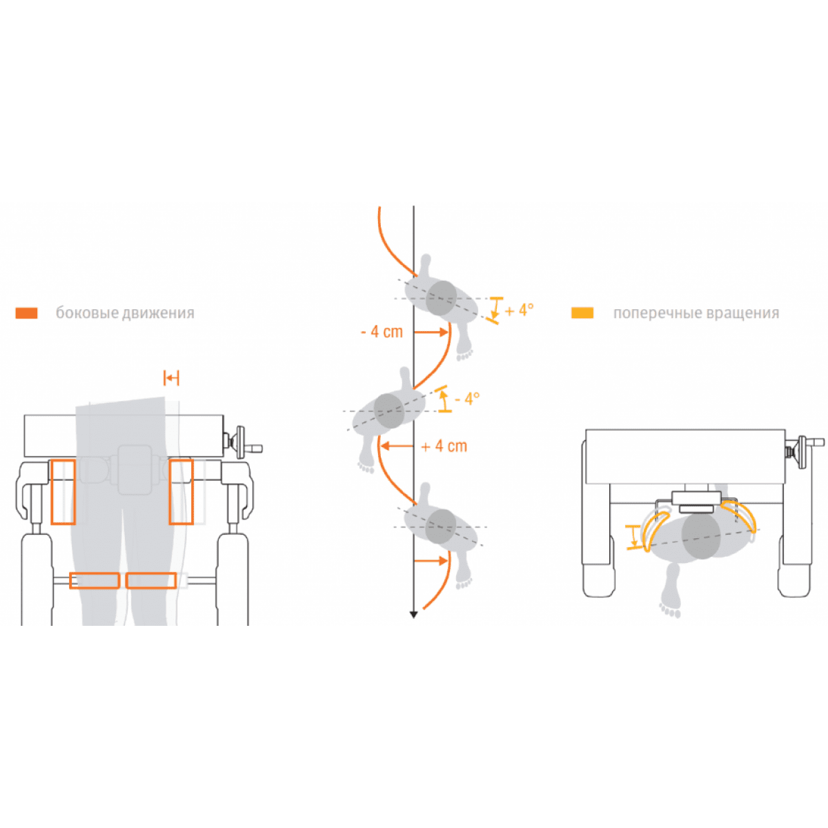 - L-ROM: предоставляет точные измерения пассивного объёма движений в тазобедренном и коленном суставах пользователя